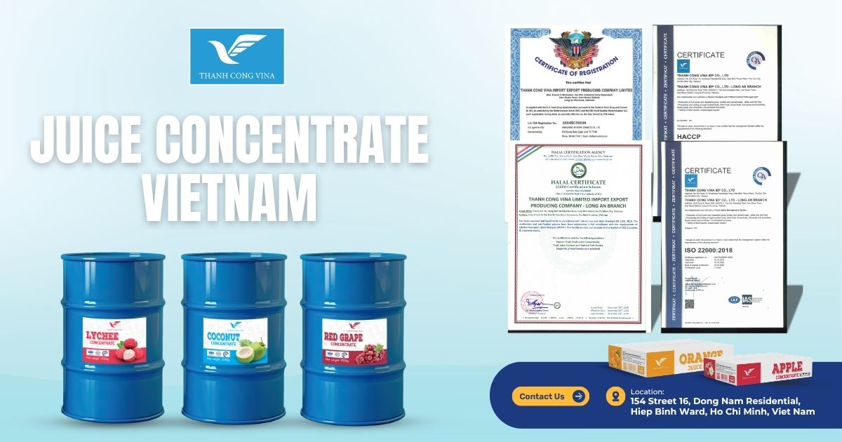 Thanh Cong Vina is the leading juice and drink manufacturer and exporter in Vietnam since 2016 in Long An with hundreds of hectares of farmland covered with typical tropical fruits of Vietnam, Thanh Cong Vina specializes in producing and processing fruit foods such as kumquat, orange, pineapple, noni, aloe vera, passion fruit, etc.