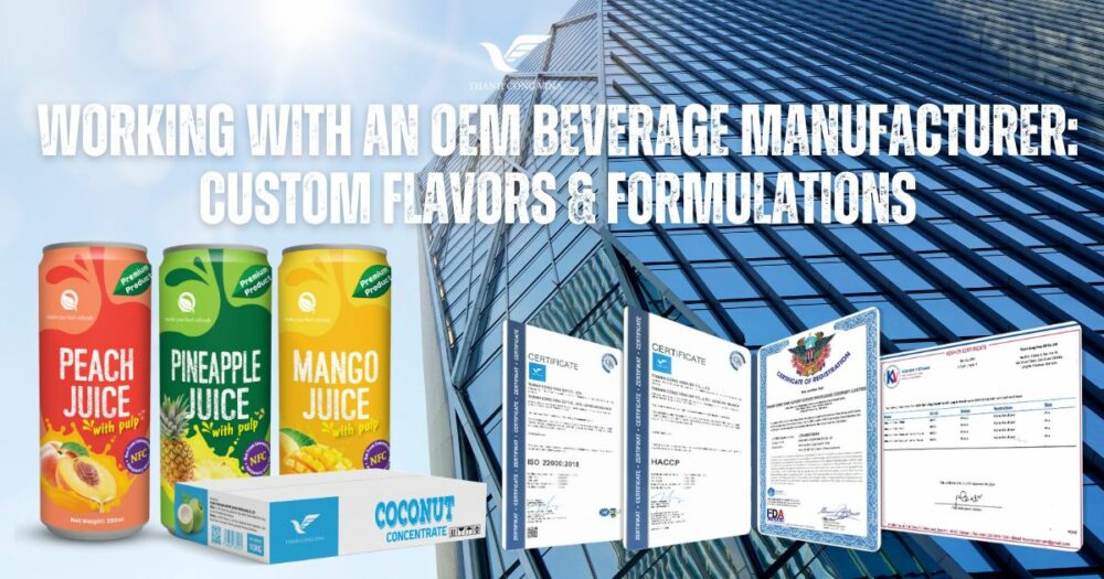 thanhcongvina 0 comments Products Knowledge October 29, 2025 29 Oct 2025 Working with an OEM Beverage Manufacturer: Custom Flavors & Formulations In today’s highly competitive beverage market, product differentiation is no longer optional—it is the key driver for brand survival an... Continue reading
