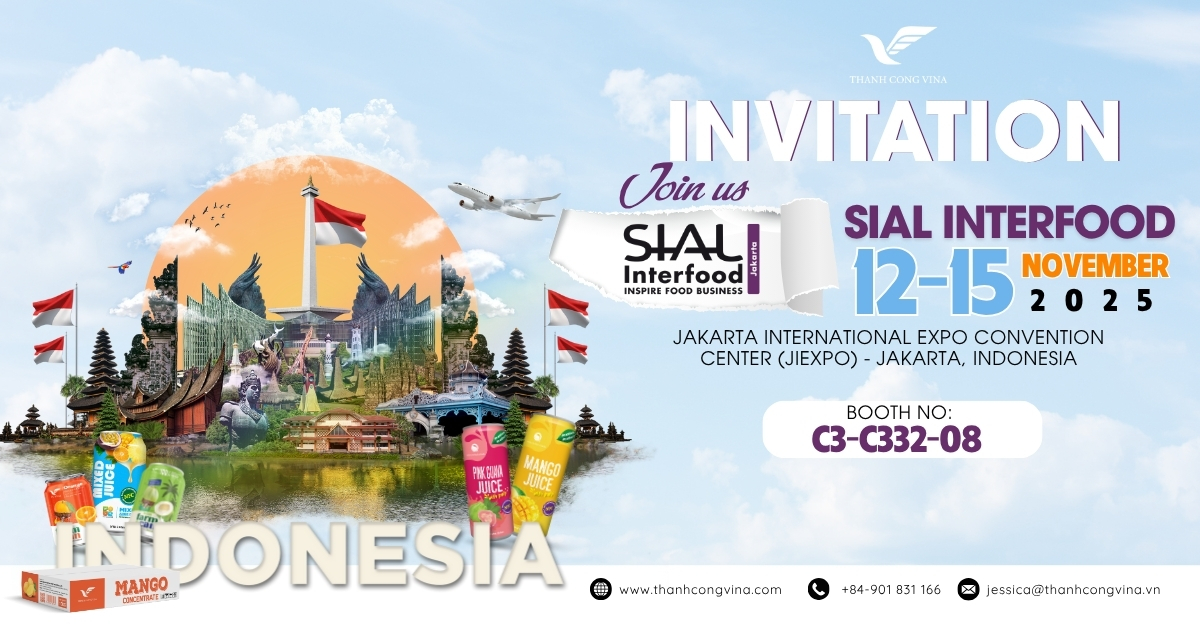 Jakarta, Indonesia – November 2025 – Thanh Cong Vina, a leading beverage manufacturer from Vietnam, is pleased to announce its participation in SIAL InterFOOD 2025, one of Southeast Asia’s most influential exhibitions for food and beverage professionals. Bringing together brands, distributors, retailers, and F&B experts from more than 50 countries, the event marks an important milestone for Thanh Cong Vina as it expands its presence in the ASEAN market.
